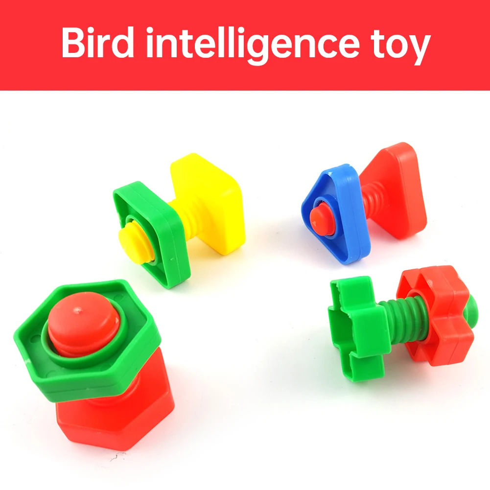 Name: Juguetes de entrenamiento de inteligencia para loros, juego de bloques de plástico para apilar tuercas, pernos, juguete de forrajeo, suministros para mascotas